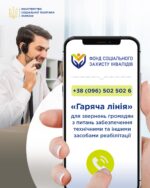 9 червня 2021 розпочала роботу телефонна «гаряча лінія» Фонду соціального захисту інвалідів.…Читати далі Фонд соціального захисту інвалідів запровадив роботу «гарячої лінії» +38 (096) 502-502-6 для звернень громадян з питань забезпечення технічними та іншими засобами реабілітації